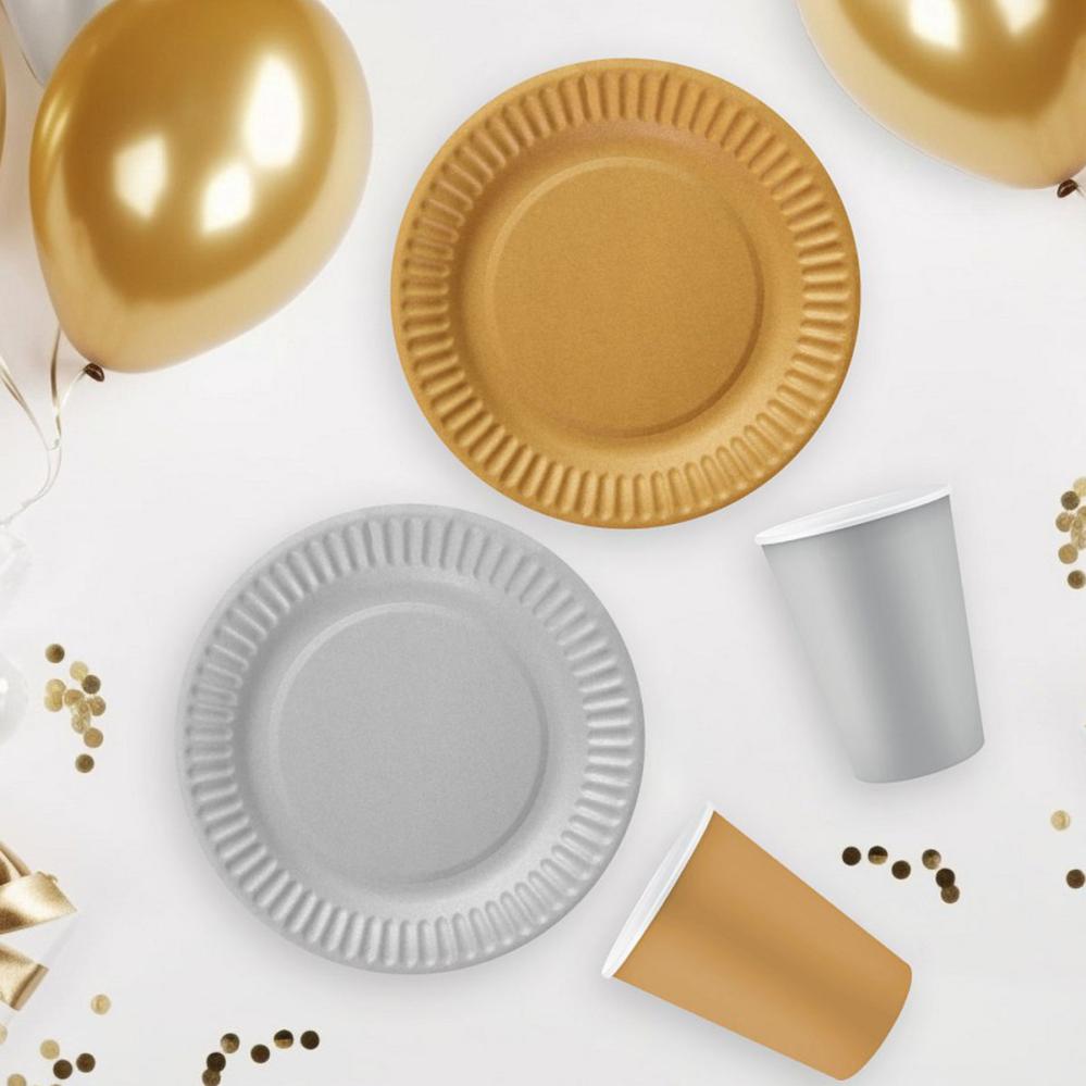Disse pappkoppene i gull gjør borddekkingen harmonisk og passer til en fest der nyttår feires, samtidig som de gjør serveringen av drikke enkel. Fargen binder sammen en juleborddekking der gull går igjen i detaljer som servietter og lys.