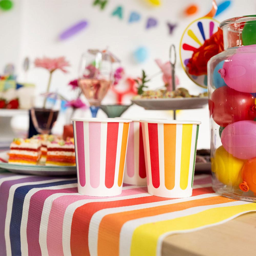 Pappkopper Stripetastic 8-pakning er fargerike festkopper som liver opp enhver fest. Det er perfekte pappkopper til fest og smarte festtilbehør når du vil skape et lekent tema med kopper til barnebursdagen.