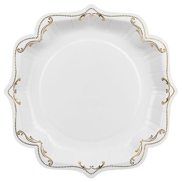 Papptallerkener Ornament Gull/Hvit 26 cm 6-pakning