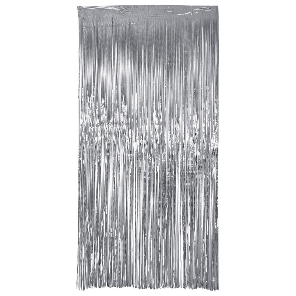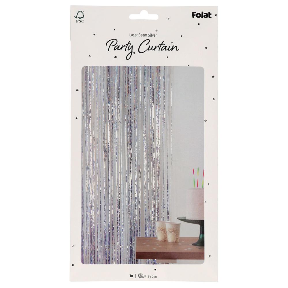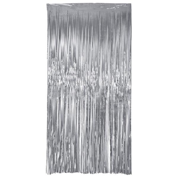 Party Draperi Iriserende Sølv 200x100 cm består av et festlig dørdraperi med lange og tynne remser i en skimrende sølvfarge som skaper en holografisk effekt.