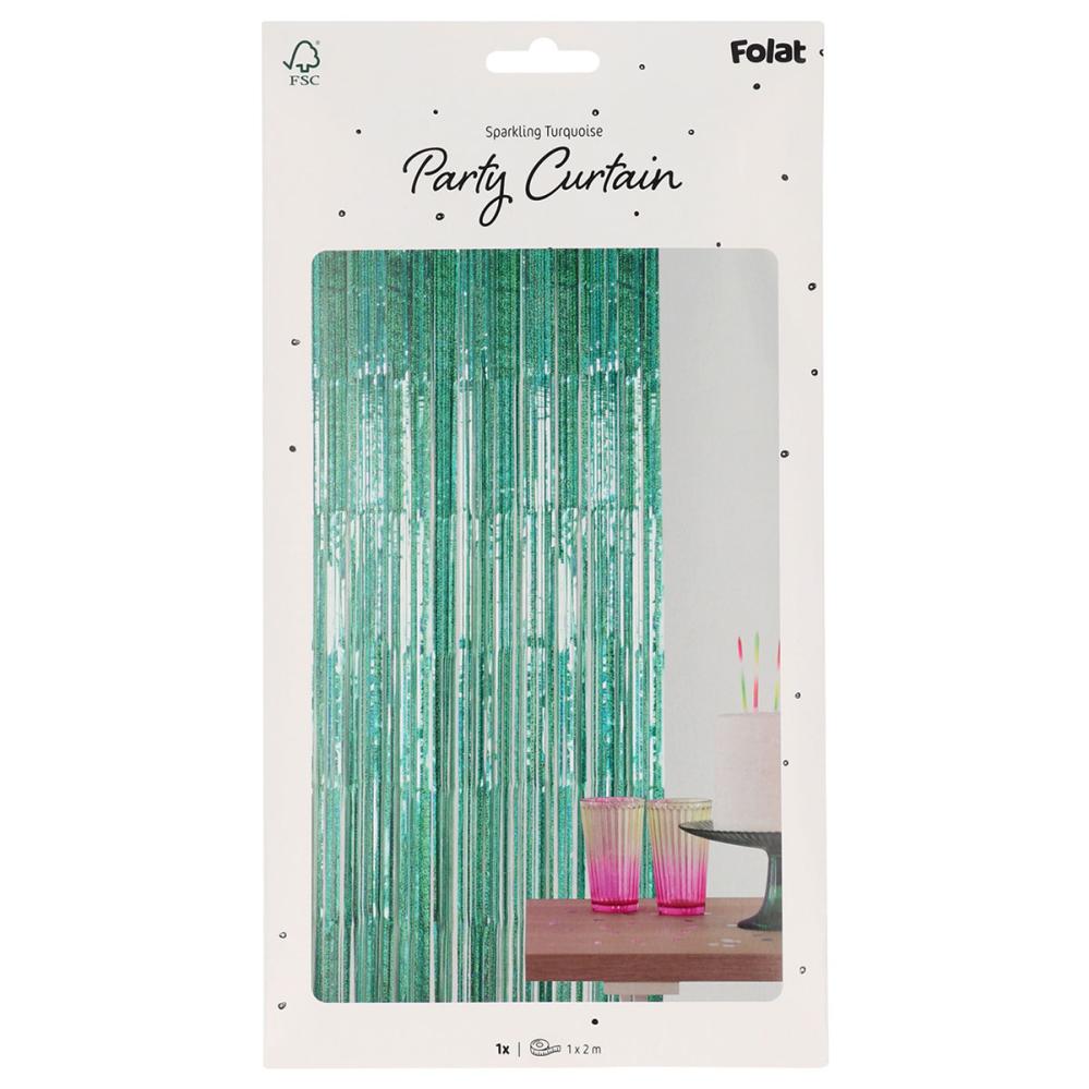 Skap en wow-effekt med dette skimrende dørforhenget i turkis, perfekt som dørgardin eller festdekorasjon. Dette glitterforhenget fungerer også som partyforheng eller frynsegardin og får festen til å skinne ekstra mye.