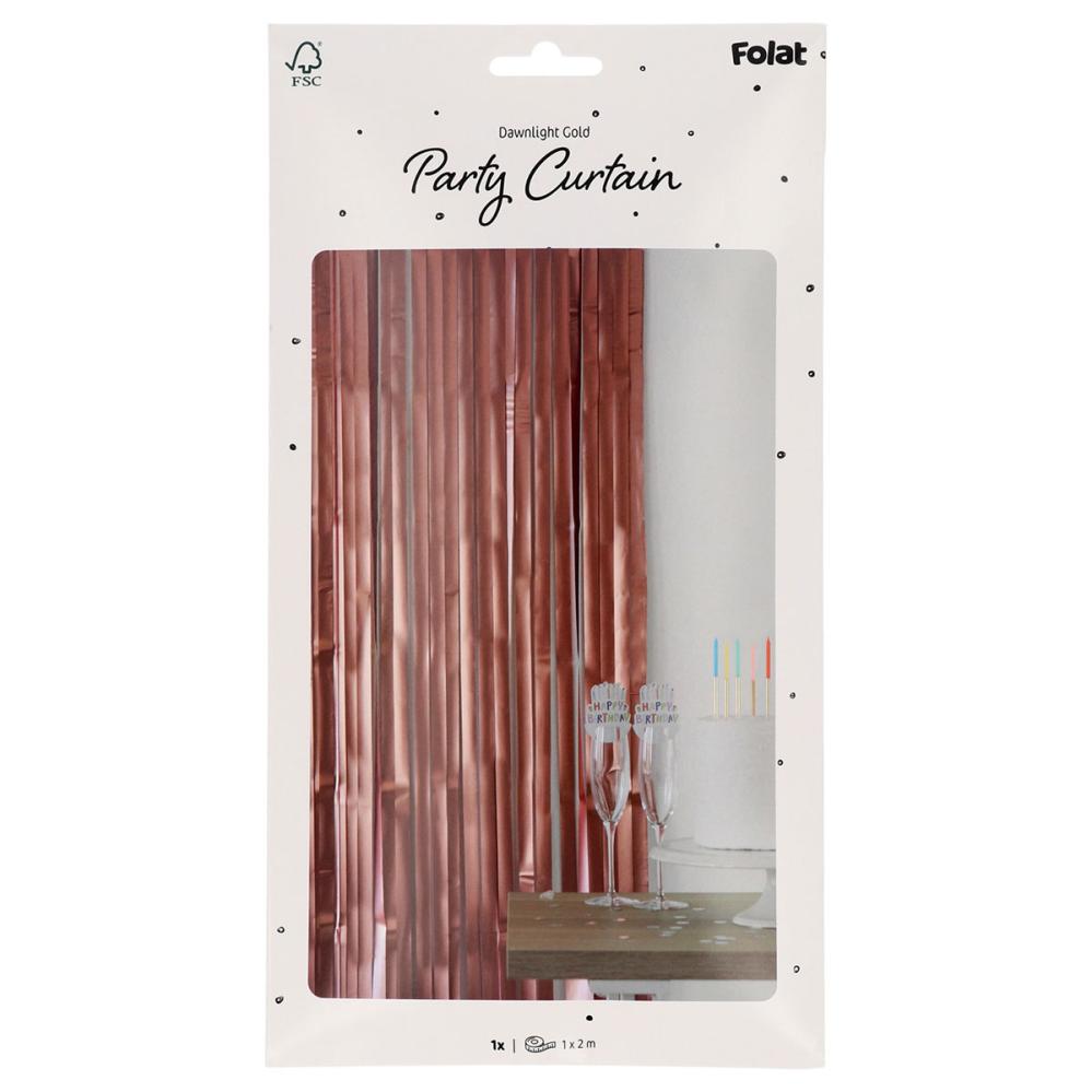 Party Draperi Matt Rosegull 200x100 cm består av et festlig dørdraperi med lange remser i en elegant, matt rosegulld farge.