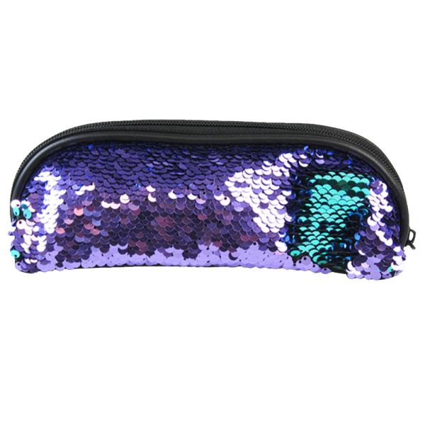 Penal Paljetter Lilla omfatter et pennal med lilla paljetter og en glidelås.