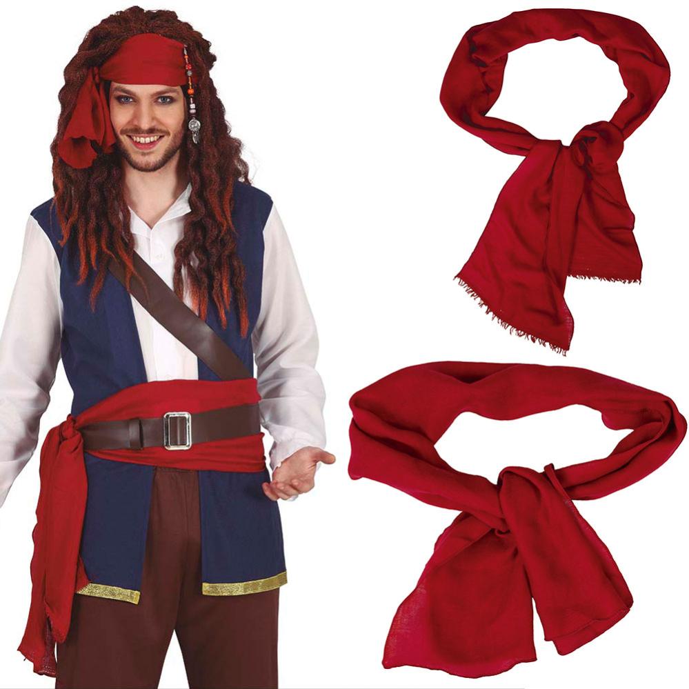 Forvandle deg til en ekte sjørøver med dette piratsettet i rødt, fløyelslignende materiale. Perfekt til en kostymefest eller halloween med motiv av en pirat, der du enkelt knyter bandanaen og piratbeltet for en autentisk look som imponerer.