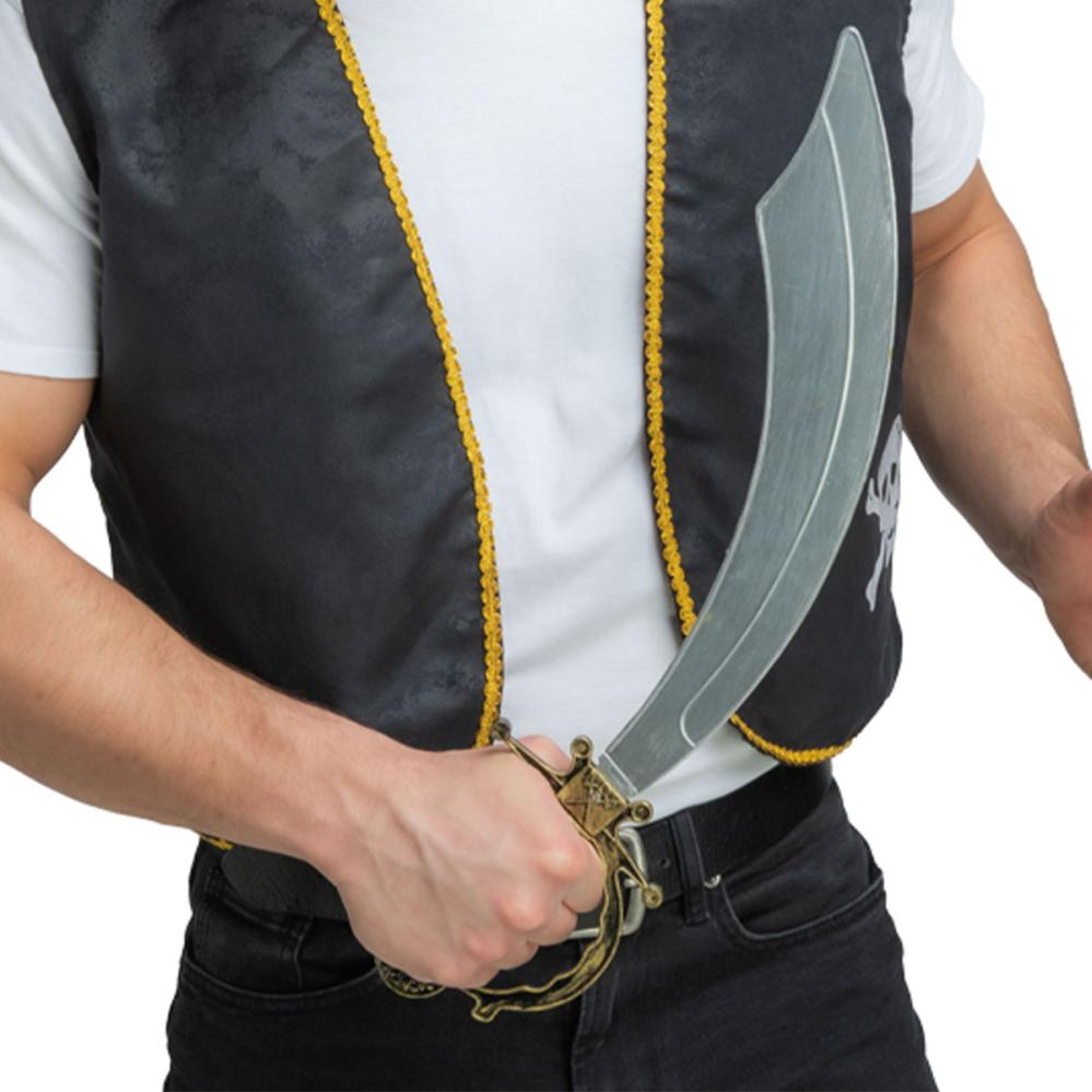 Dette pirattilbehøret kompletterer kostymet ved temafest og scenelek og passer også i fotohjørnet. Til maskerade bærer piraten gjerne sverdet, særlig på halloween da kostymet blir komplett. På en piratmaskerade fungerer rekvisitten for lek og fotografering uten å ta over kostymet.