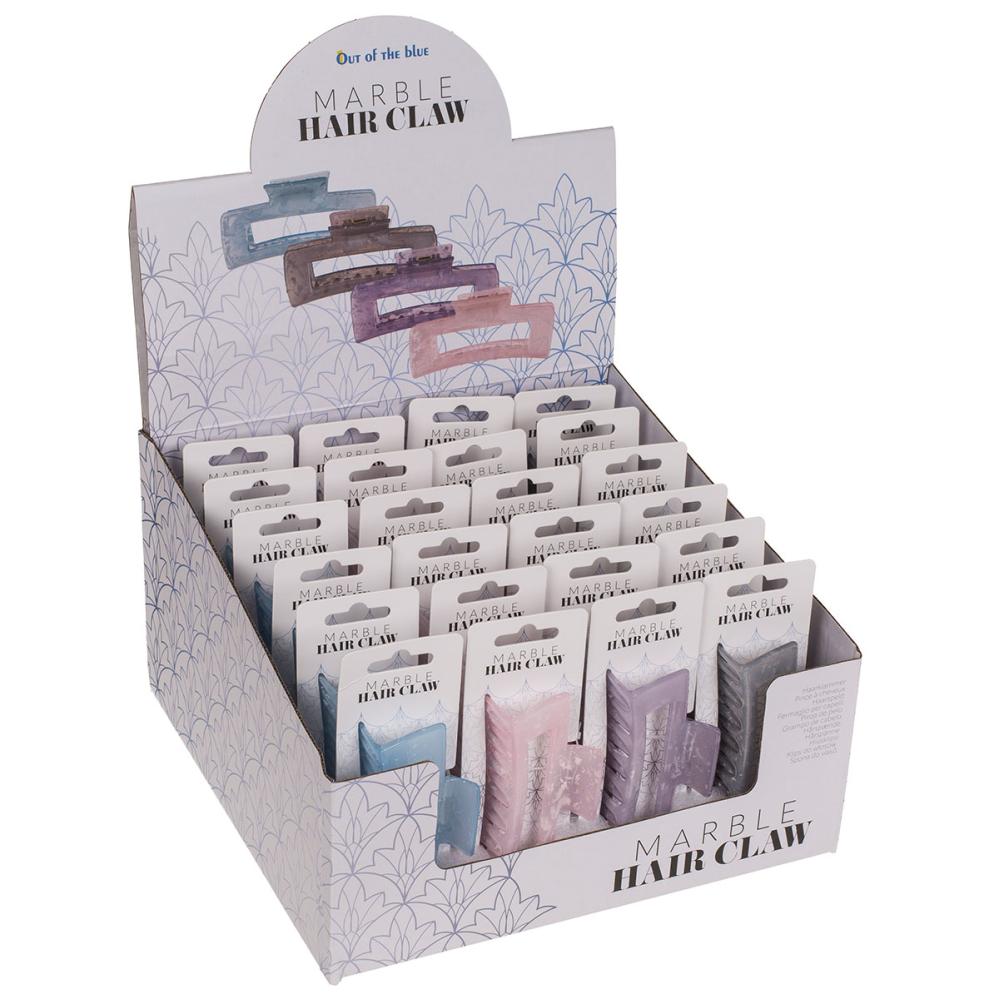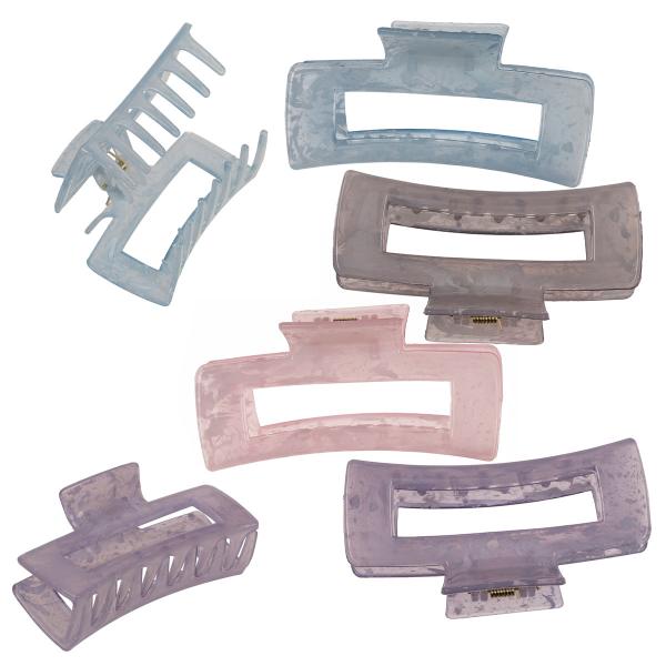 Rektangulær Hårklype Marmor 10 cm er en rektangulær hårklype med en lett gjennomsiktig overflate og et marmorert mønster. Hårklypen finnes i fire ulike farger.