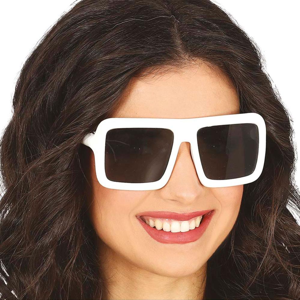 Rektangulære Briller Svart/Hvit omfatter rektangulære briller med svarte linser og hvite innfatninger.