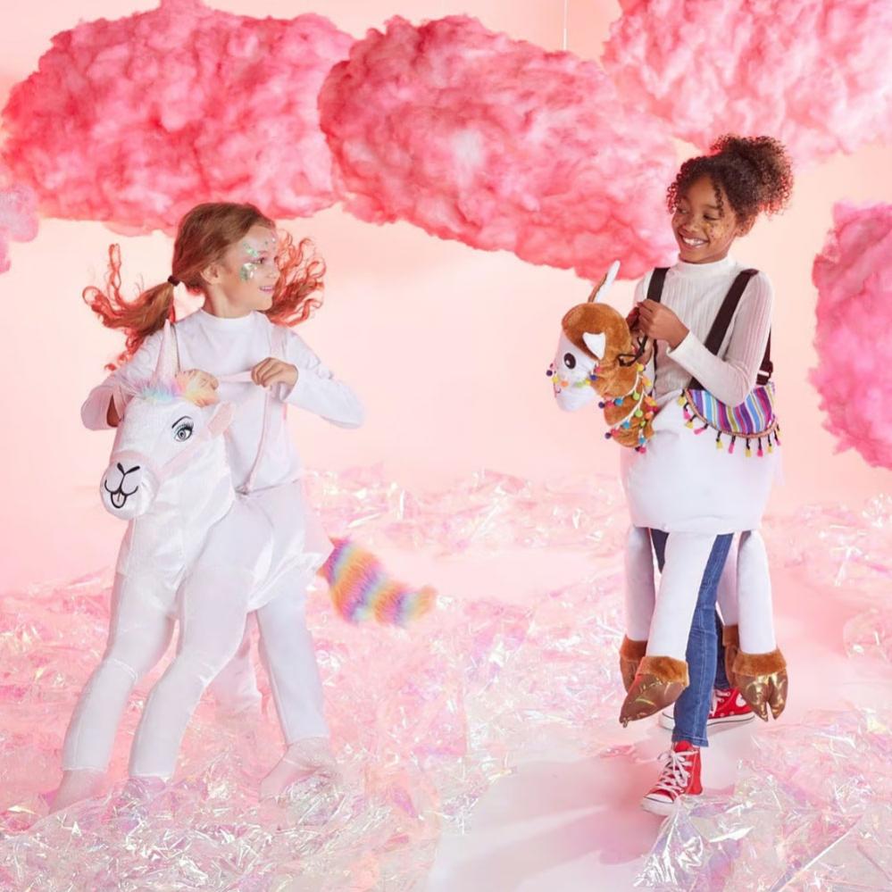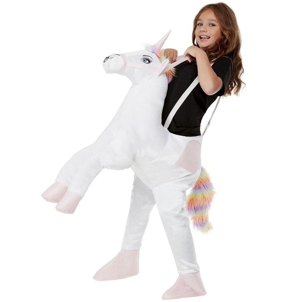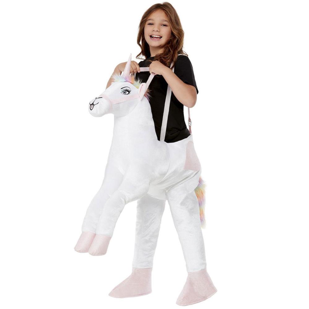 Forvandle barnets utkledning med denne enhjørningsdrakten for barn som skaper illusjonen av å ri på et magisk vesen. Et morsomt Halloween-kostyme og et perfekt ridende kostyme for lekne festligheter med fargerike detaljer.