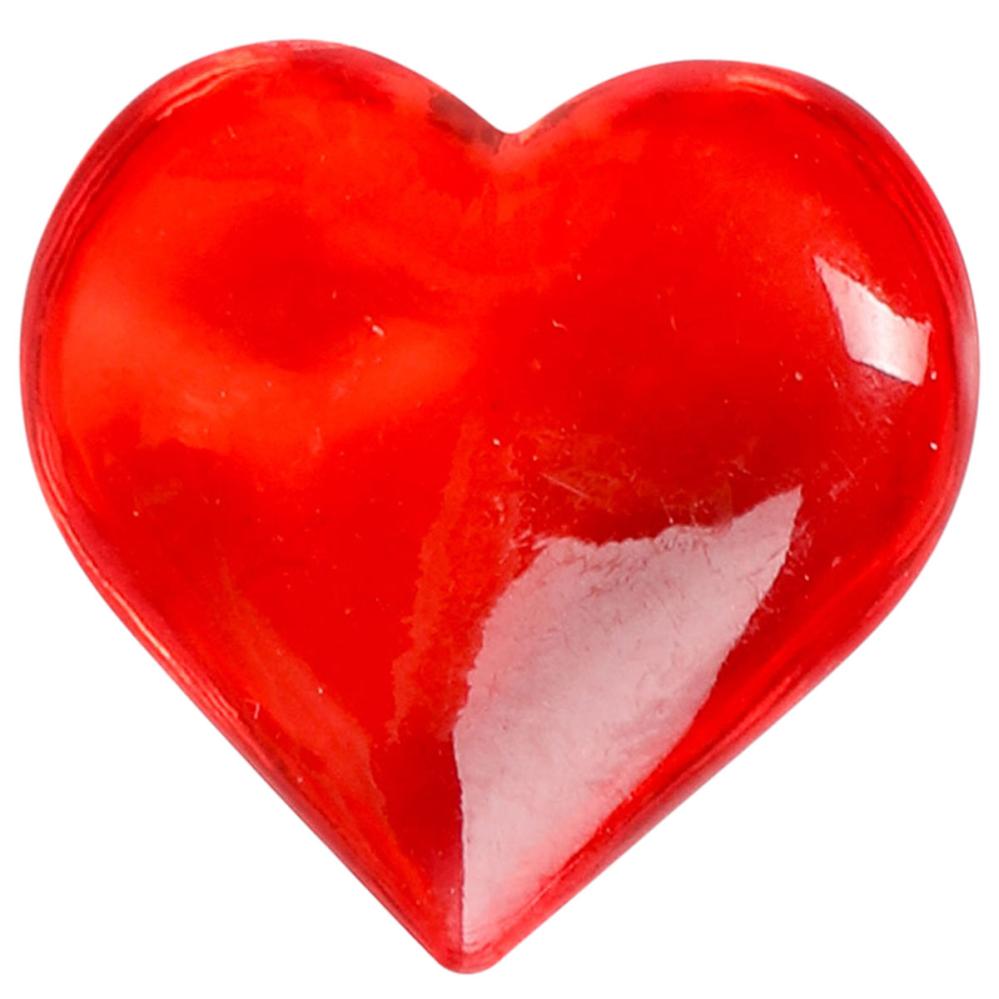 Røde Krystallhjerter 25-pakning består av dekorasjonskrystaller formet som små, avrundede hjerter i en vakker, transparent rød farge.