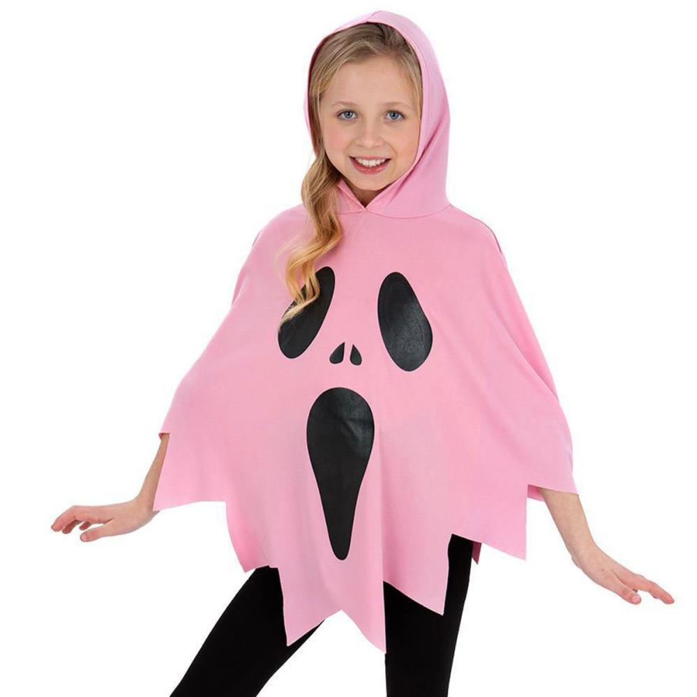 Forvandle barnets antrekk med denne rosa halloweenponchoen for barn med et sjarmerende spøkelsesansikt. En kul spøkelsesdrakt som passer perfekt for alle barn som ønsker en unik utkledning som et spøkelse på en kostymefest eller halloweenfest.