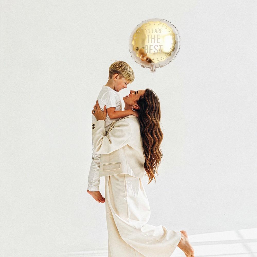 Rund Folieballong You Are The Best 35 cm omfatter en rund, beigefarget folieballong med et gullfarget trykk og motiv av små stjerner samt teksten ”YOU ARE THE BEST”. Kan fylles med luft eller helium og leveres med et sugerør for oppblåsing.