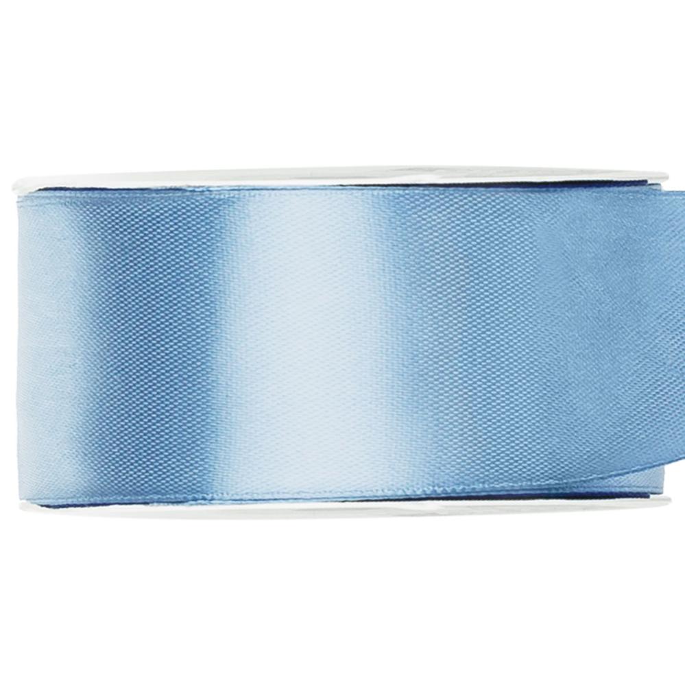 La kreativiteten flyte med et 25 mm bredt blått satengbånd på rull, perfekt til dekorasjon for eksempel til en babyshower eller et selskap. Det brede dekorasjonsbåndet gir et mykt, elegant preg til gaveinnpakning og festdetaljer.