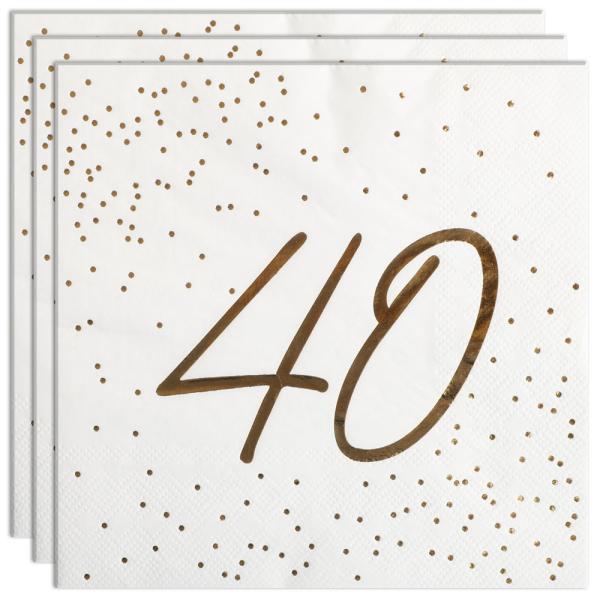 Skap en stilren borddekking med 40 års tema med disse serviettene. De er perfekte som bursdagsservietter med tallet 40 når det er tid for å feire.