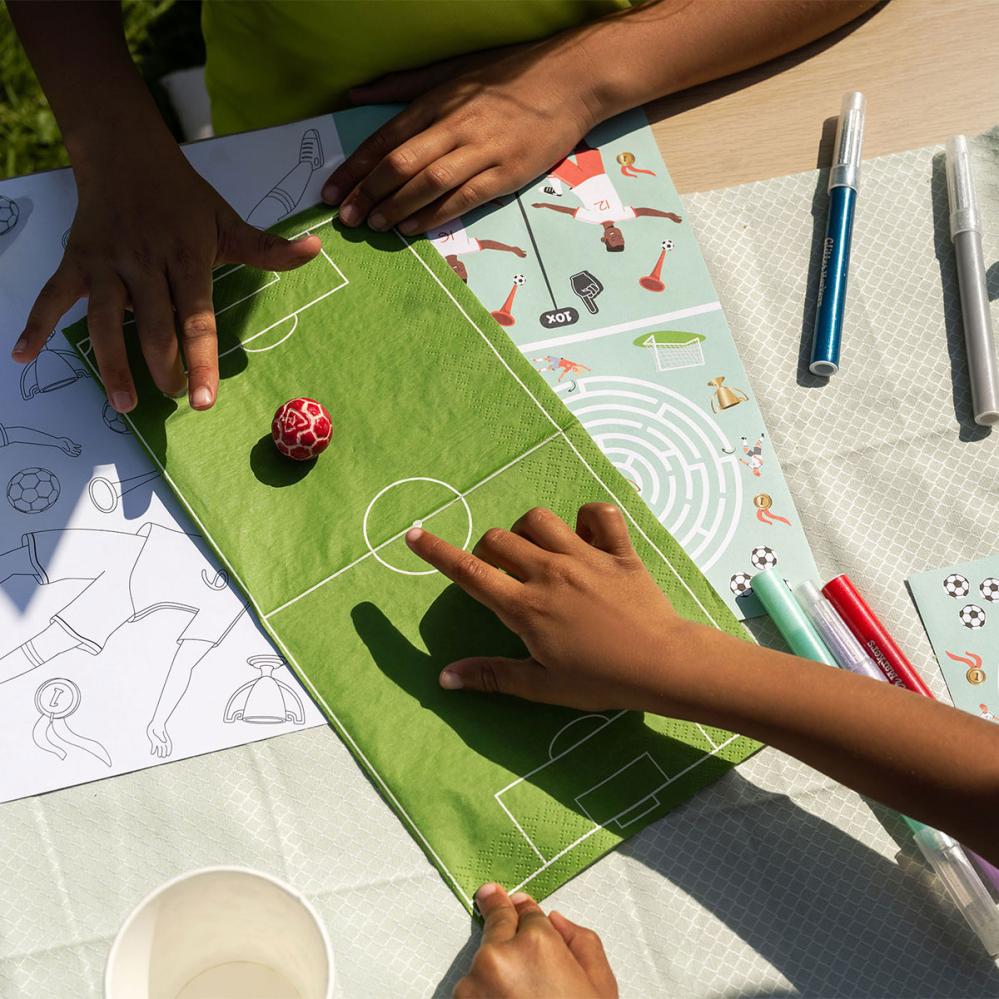 Gjør suksess i et barnebursdagsselskap med fotballtema med disse lysegrønne selskapsserviettene. Perfekte som festtilbehør for å skape kampstemning rundt bordet og gi festen en sporty følelse av fotball.