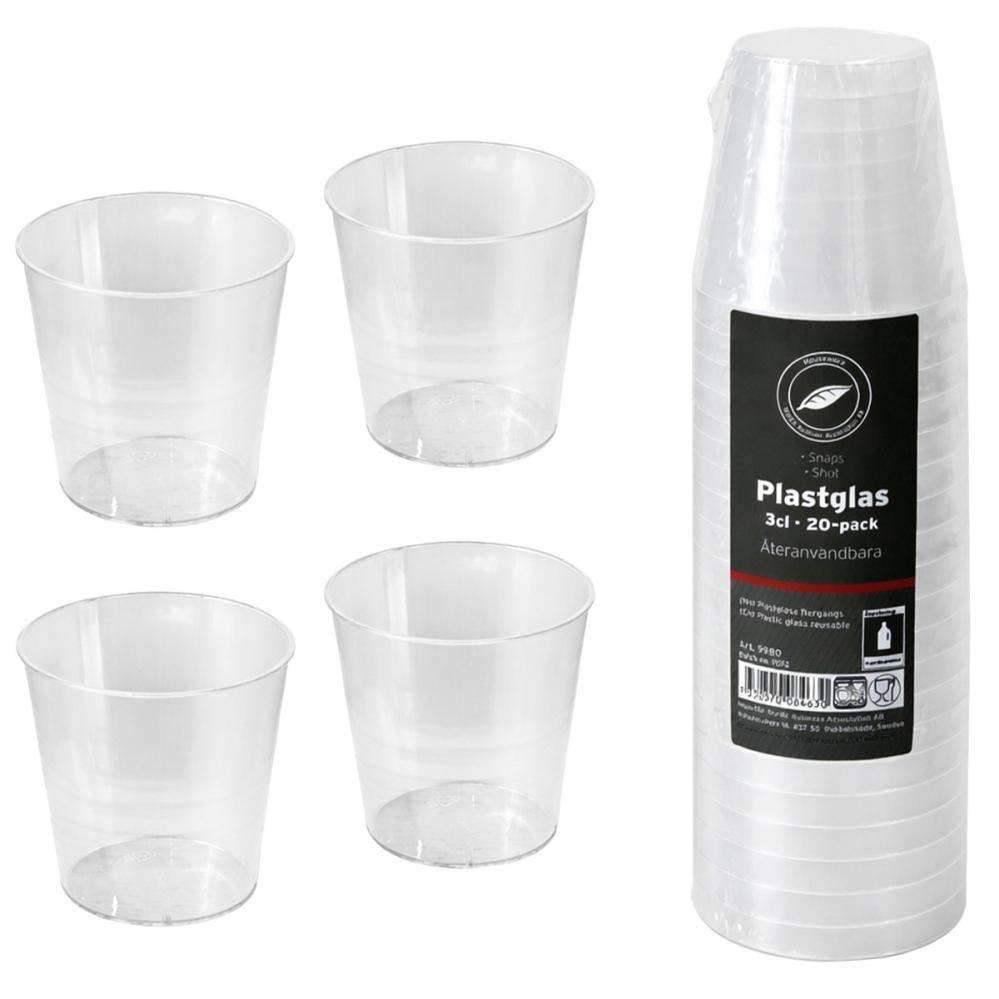 Shotglass Plast 3 cl 20-pakning inneholder tjue transparente shotglass som kan brukes om igjen.