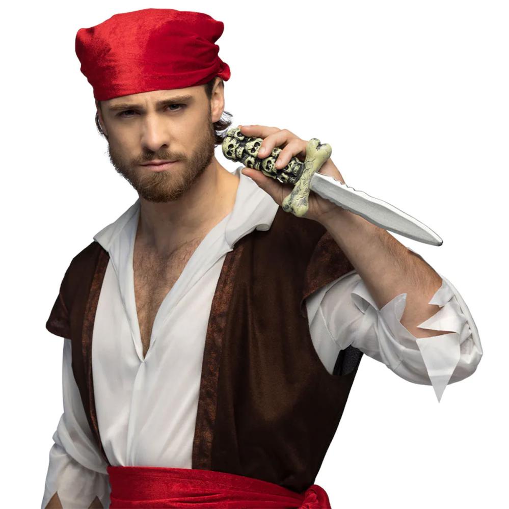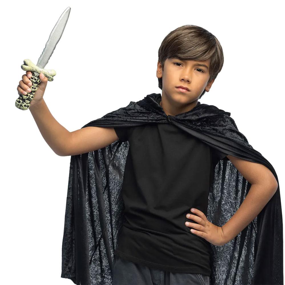Som en kniv med diskrete hodeskaller fungerer den både til halloween og til kostymefest. Denne dolken er lett og laget av plast, uten skarpe kanter og enkel å bære ved utkledning.