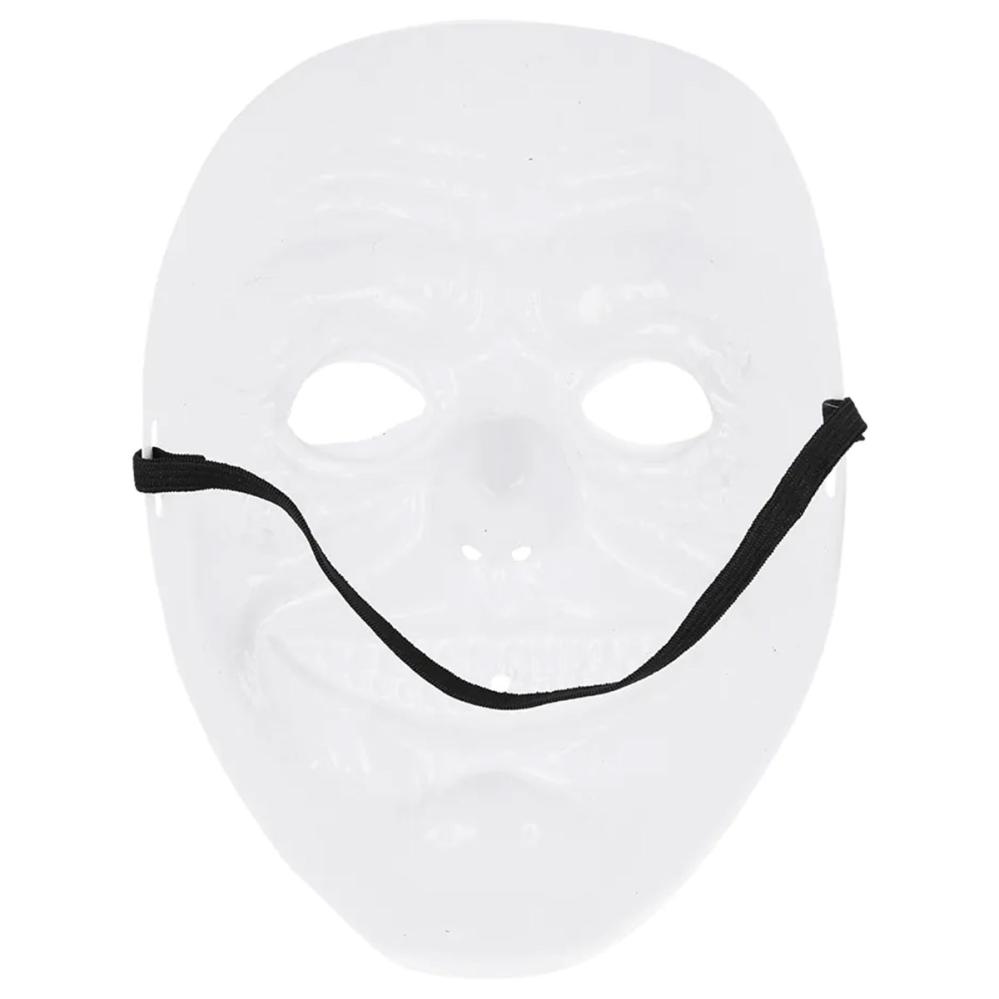 Smilende Klovnemaske er en hvit klovnemaske med et smil, røde lepper, rød nese og blå farge rundt øynene. Masken har hull for øyne, nese og munn og holdes på plass med et svart elastisk bånd.