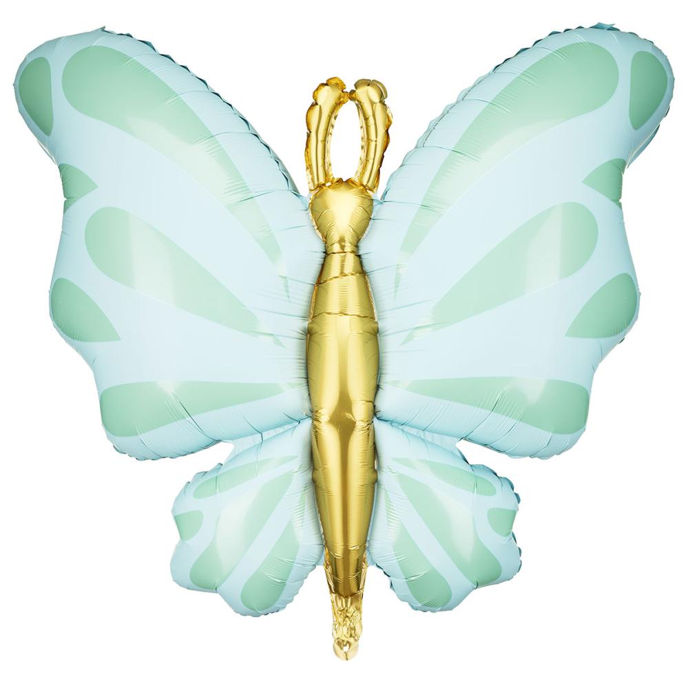 Info om Sommerfugl Folieballong Mintgrønn/Gull: