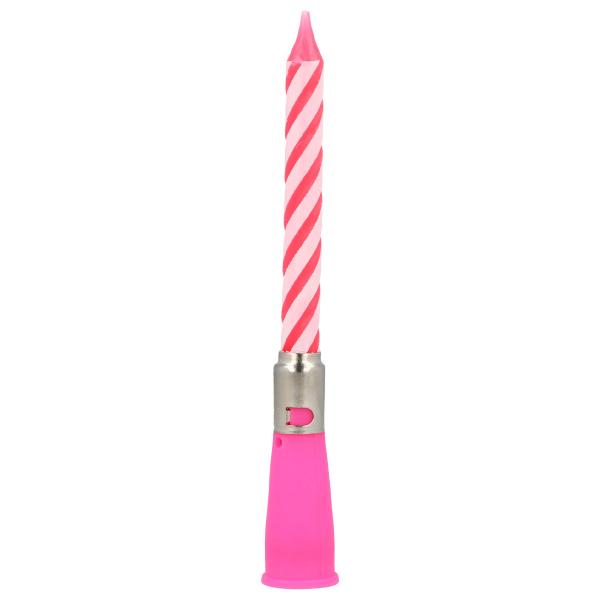 Gjør feiringen morsommere med et kakelys med musikk som starter med en gang når du vrir på holderen. Dette bursdagslyset med lyd kombinerer en lysholder med et rosa og hvitt spiralformet lys. Et musikklys som merkes.