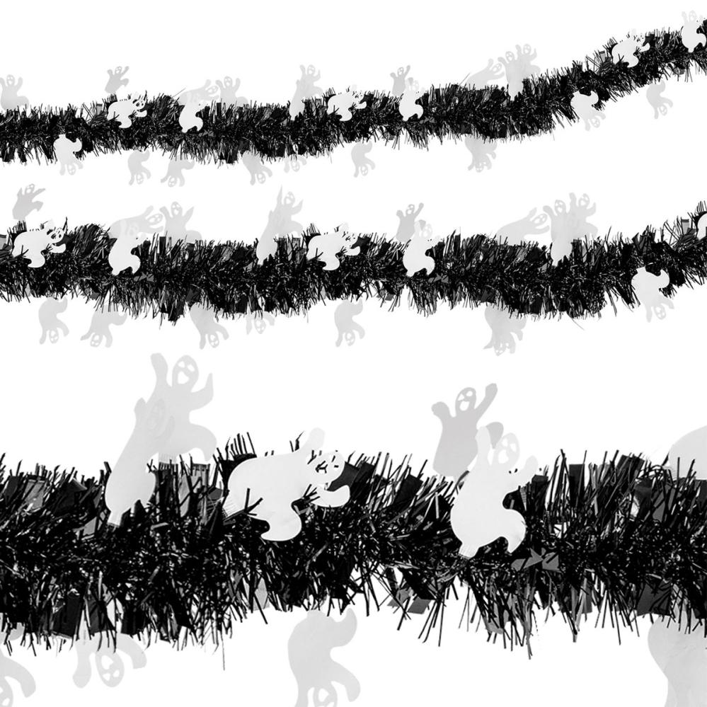 Spøkelser Glittergirlander er en svart glittergirlander med hvite spøkelser.