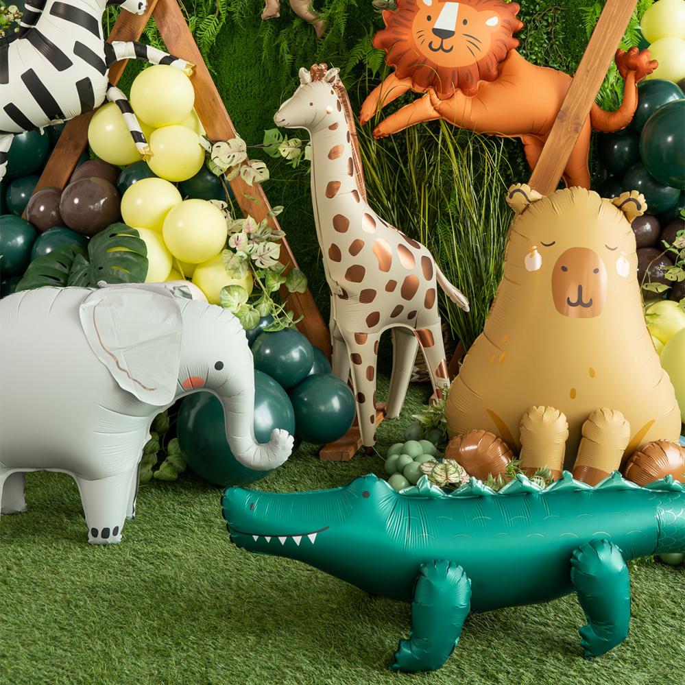 På et selskap med jungeltema blir denne dyreballongen i form av en krokodille en dekorasjon som stjeler oppmerksomheten fra hvilken som helst annen ballong. Som folieballong blir den et sjarmerende dyr på et selskap med rampete tema, nesten klar til å tasse mot kaken.