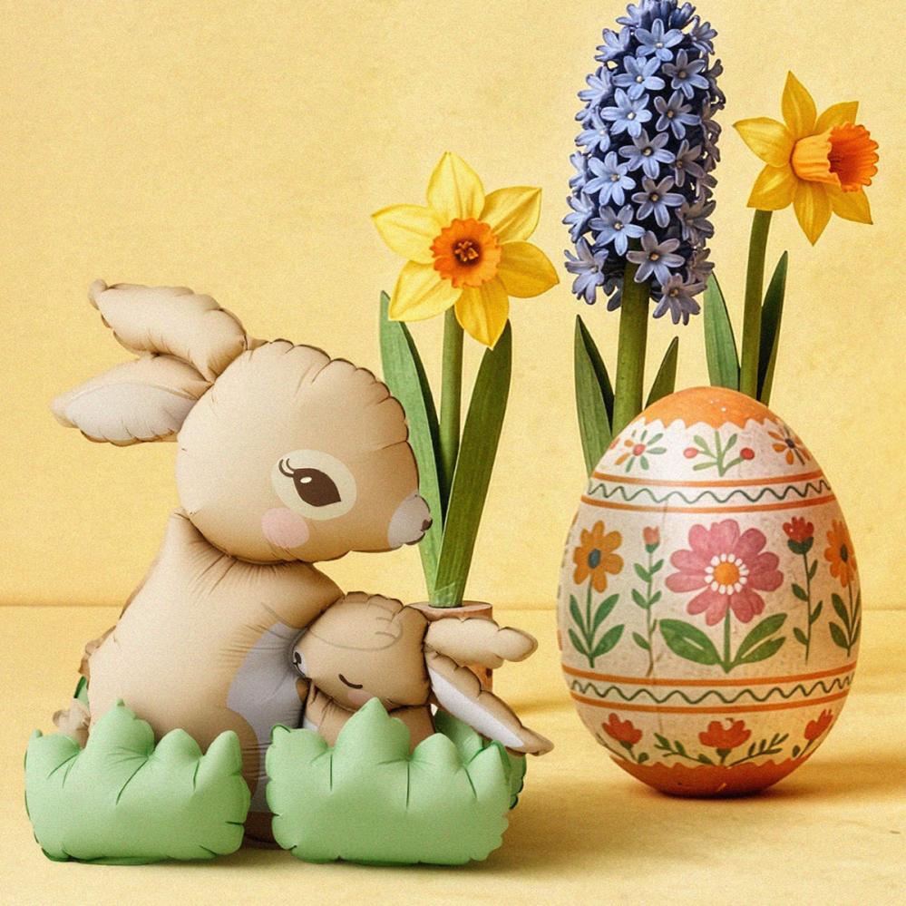 Planlegg et påskeselskap der skimrende påskeballonger ønsker velkommen. En kanin møter en ballong i en dekorasjon som blir en elsket pynt til påske. Som påskedekorasjon skaper kaninen et blikkfang blant påskepynt når påsken feires. Perfekt for kaninfest og dyrefest med vårstemning.