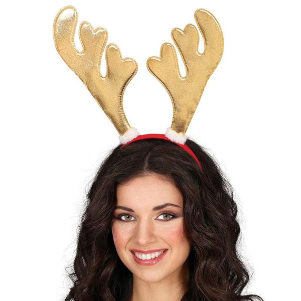 Gjør entré på julefesten med denne julehårbøylen som garantert vekker oppmerksomhet. De store gyldne reinsdyrhornene gjør den til en perfekt hårbøyle med julemotiv og en morsom juleaccessoar.