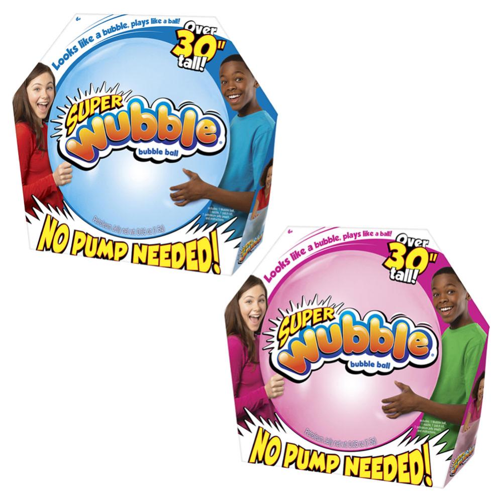 Super Wubble Bubble Ball inkluderer en oppblåsbar bobleball. En bobleball er en elastisk og holdbar ball som ser ut som en boble. Bobleballen kan blåses opp til ca 76 cm i diameter og har selvforseglende ventil. Laget av xpandium, et supersterkt materiale. Blås opp selv med medfølgende munnstykke eller bruk en pumpe. Finnes i forskjellige farger, hvilken du får blir en overraskelse.