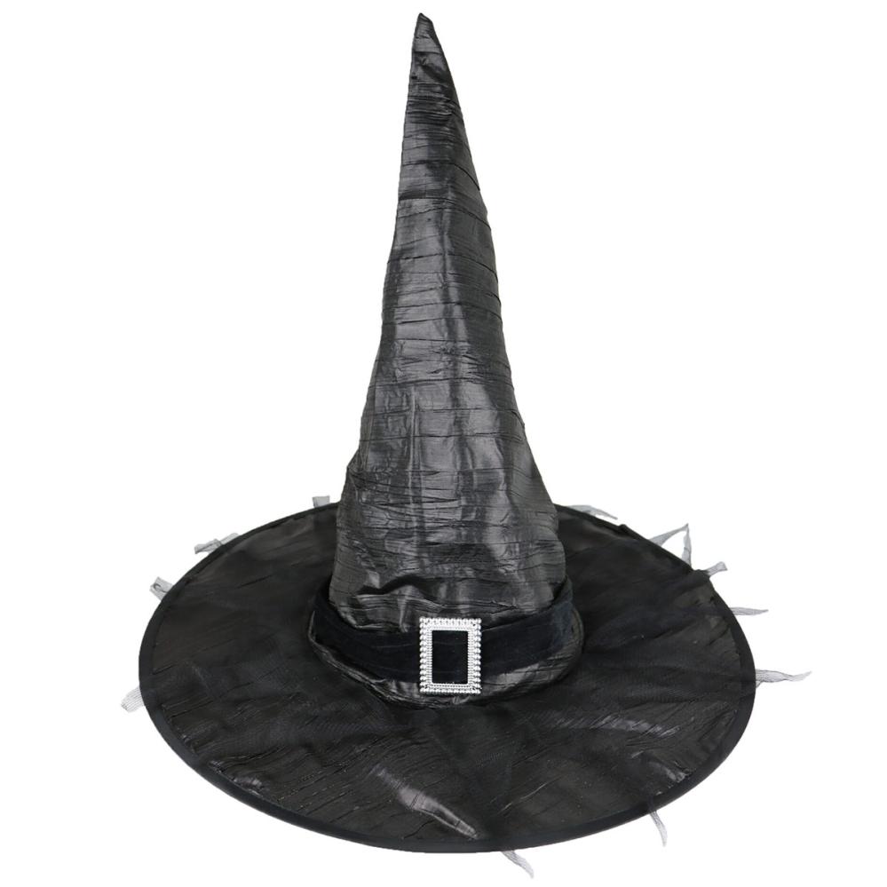 Info om Svart Heksehatt med Spenne & Nettingstoff:
