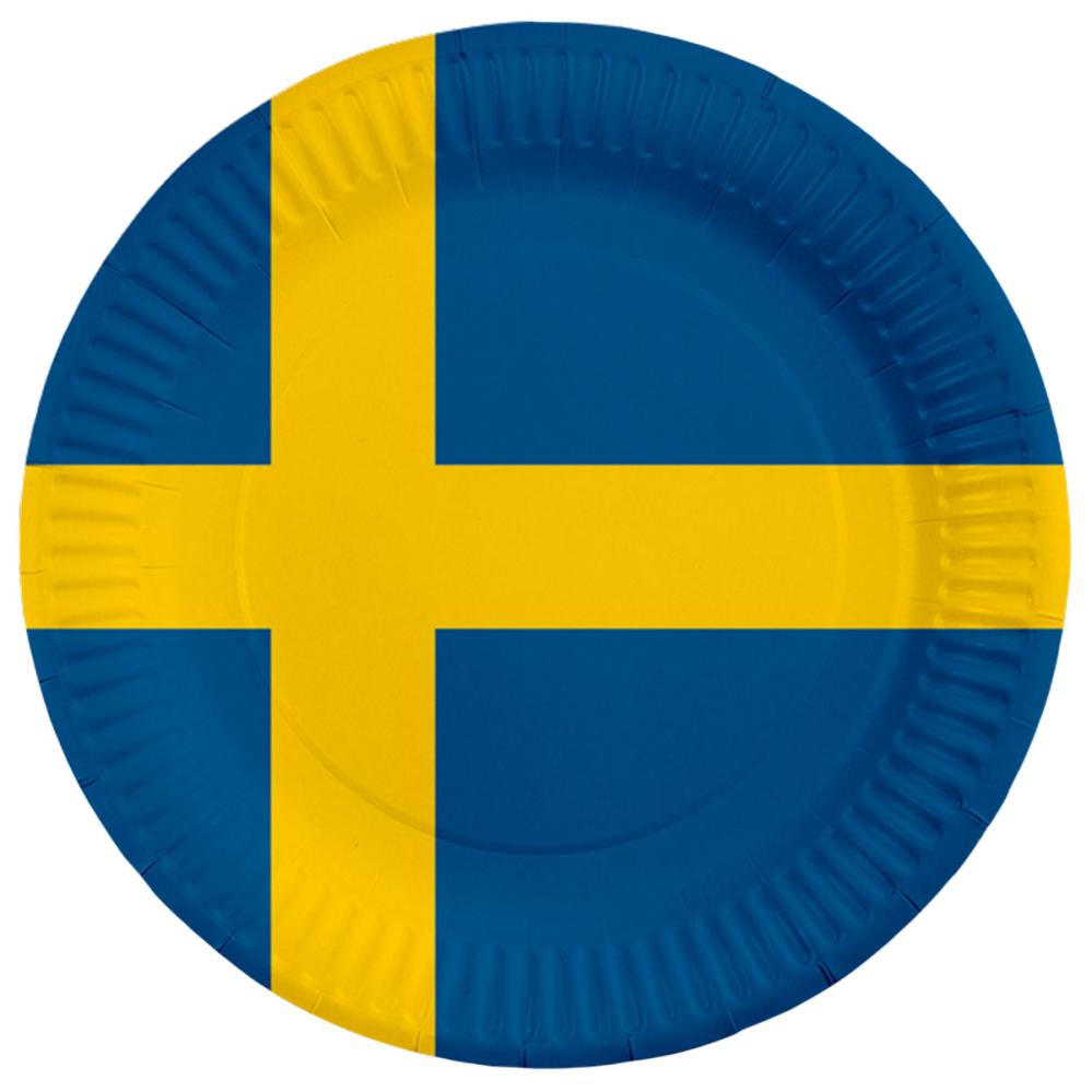 - Engangstallerkener med det svenske flagget