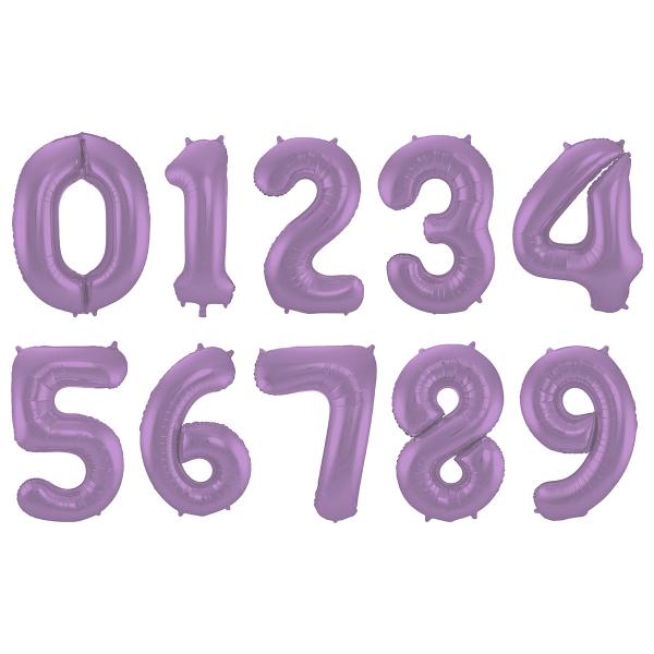 Tallballong Lilla Matt Metallic omfatter en folieballong formet som et tall i en matt nyanse av metallic lilla.