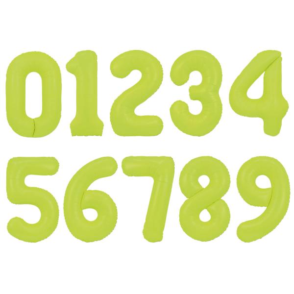 Tallballong Neongrønn 86 cm er en folieballong i form av et neongrønt tall som fylles med luft via det medfølgende blåserøret eller med helium.