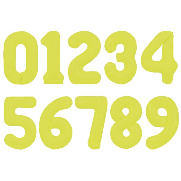 Tallballong Neongul 86 cm er en folieballong i form av et neongult tall som fylles med luft med det medfølgende blåserøret eller med helium.