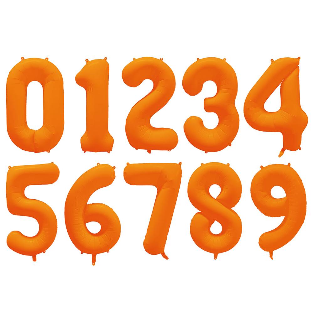 Tallballong Neonoransje omfatter en folieballong formet som et neonoransje tall.