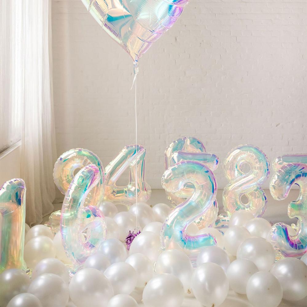En tallballong med regnbueskimmer gjør entré med glimt i øyet. Som selvstående folieballong blir den et lekent blikkfang blant bursdagens ballonger og tall.