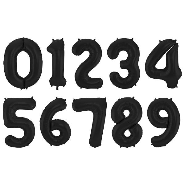 Tallballong Svart Matt Metallic er en folieballong formet som et tall i en matt metallicsvart nyanse.
