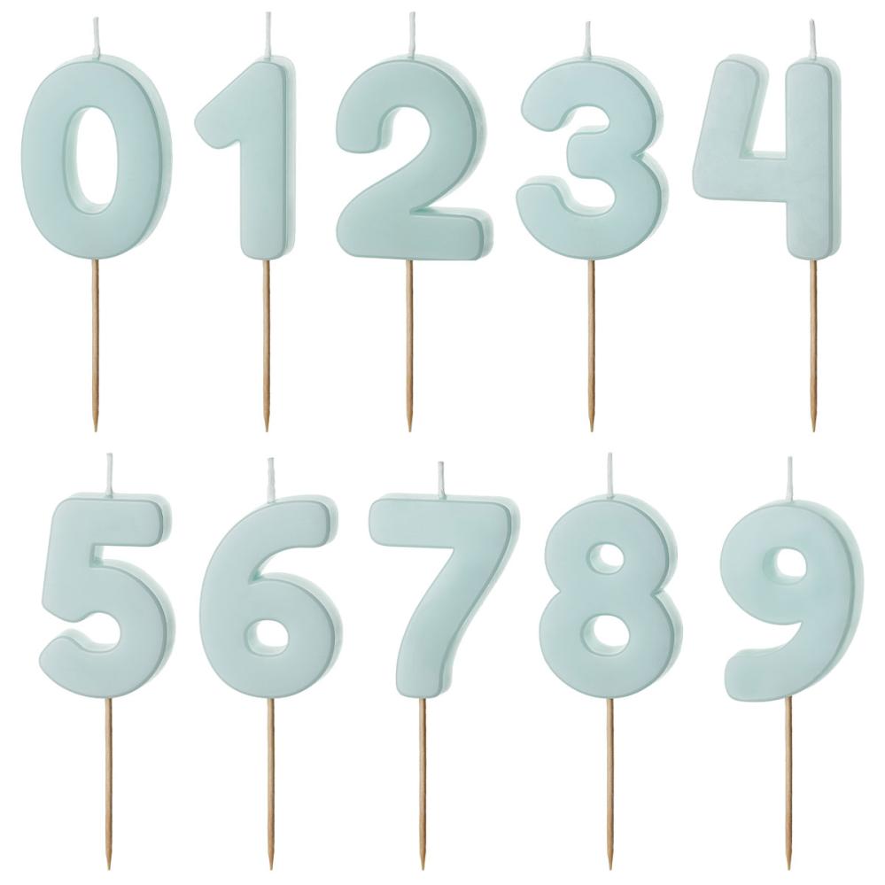 Tallys Lyseblå omfatter et kakelys formet som et siffer i lyseblå farge.
