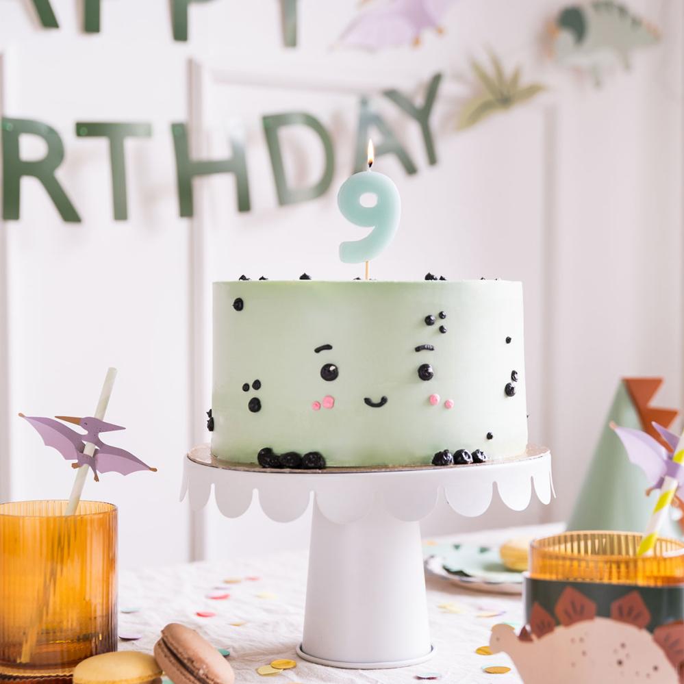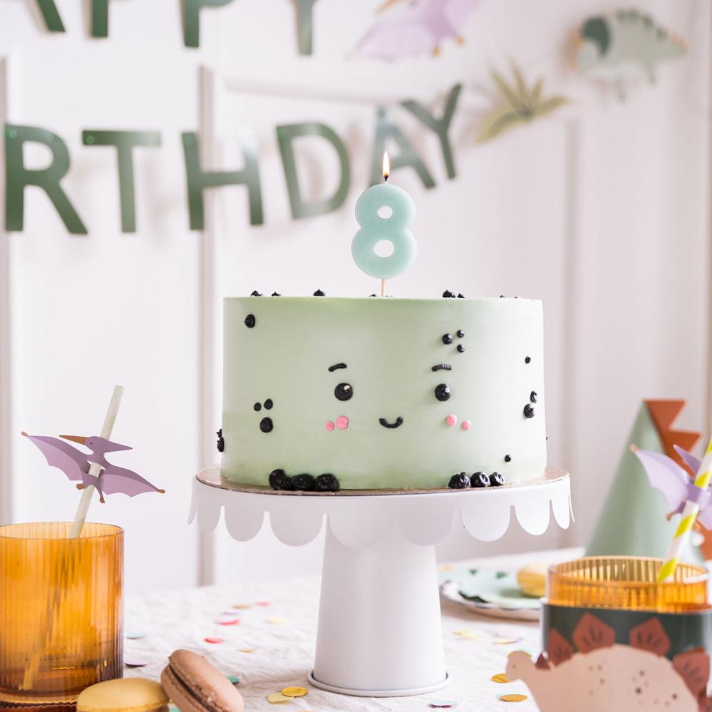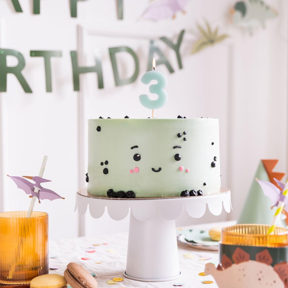 Dekorer kaken med et stilrent lys i en blå nyanse for å skape en festlig stemning. Dette kakelyset er perfekt for å gjøre feiringen ekstra spesiell. Et sifferlys fungerer utmerket som bursdagslys og gir en personlig touch.