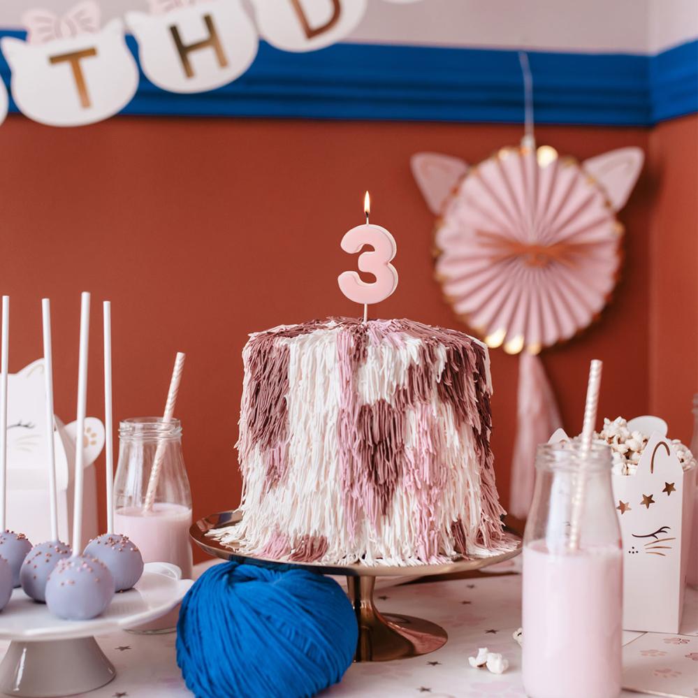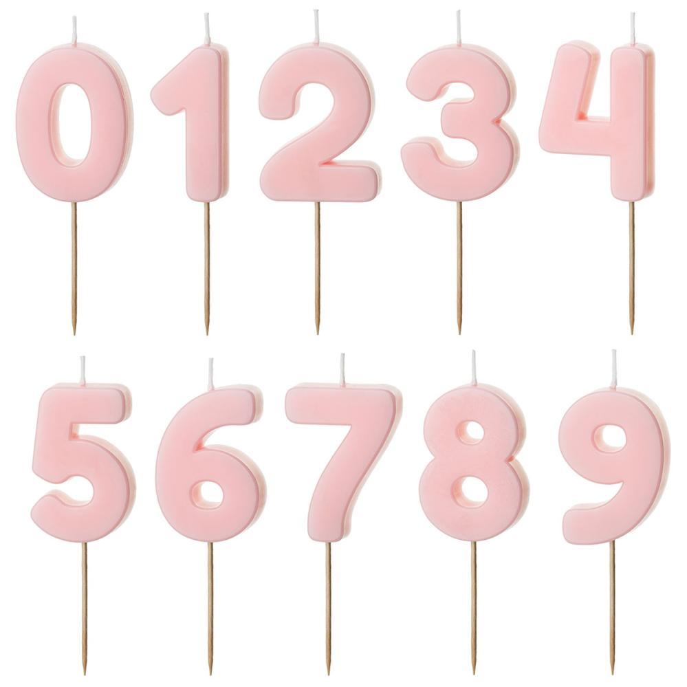 Tallys Lyserosa omfatter et kakelys formet som et tall i lyserosa farge.