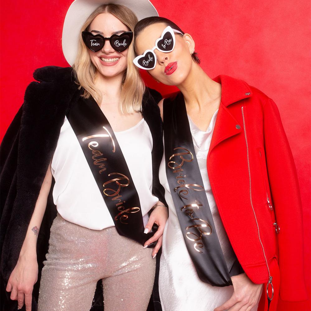 Til utdrikningslaget er ordensbånd ofte de accessoirene som setter tonen, og som bånd til utdrikningslag hører de selvfølgelig hjemme blant kveldens tilbehør. Det er et vakkert svart Team Bride bånd som får hele gjengen til å føle seg som stjerner i en glitrende komedie.