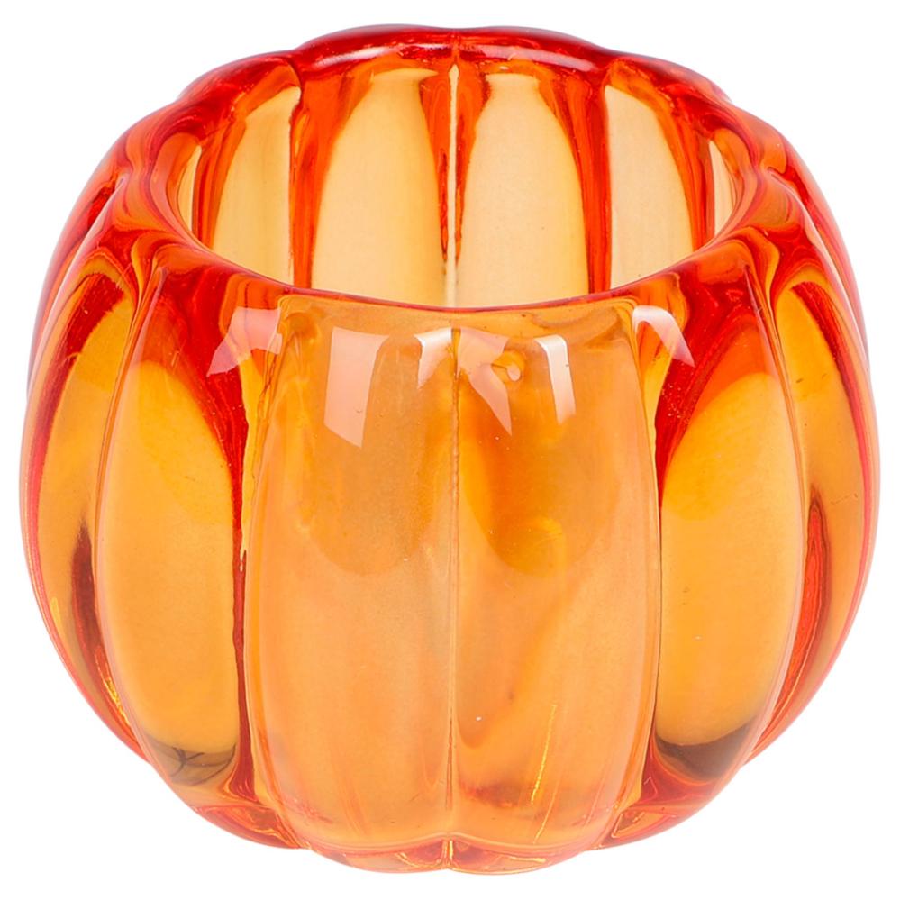 Telysholder Gresskar er en lysholder av gjennomsiktig oransje glass som er formet som et klassisk gresskar og passer til telys.