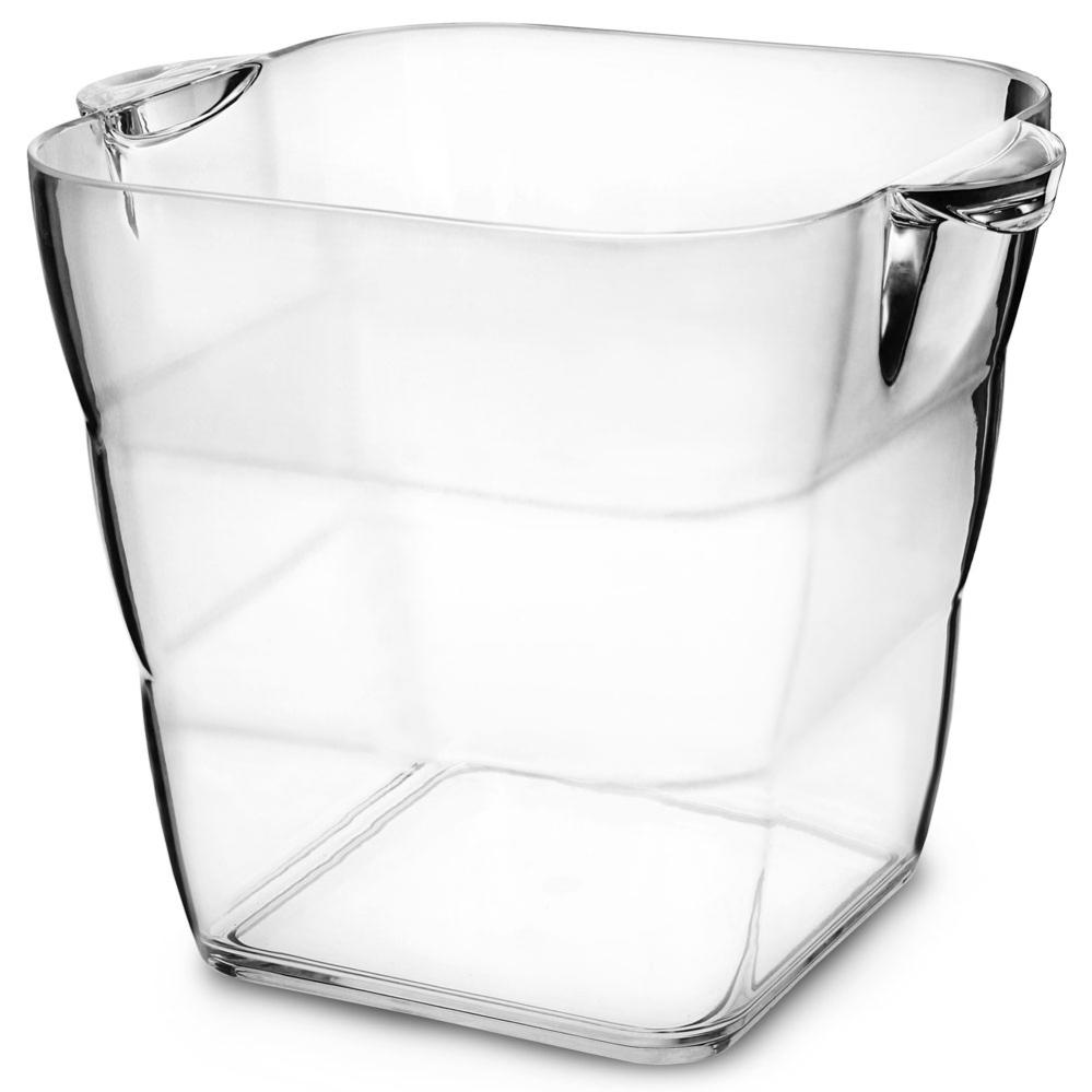 Tower Vin- & Champagnebøtte består av en gjennomsiktig, firkantet isbøtte til vin- og champagneflasker med små håndtak på sidene. Bøtten kan også brukes til mindre flasker og bokser.