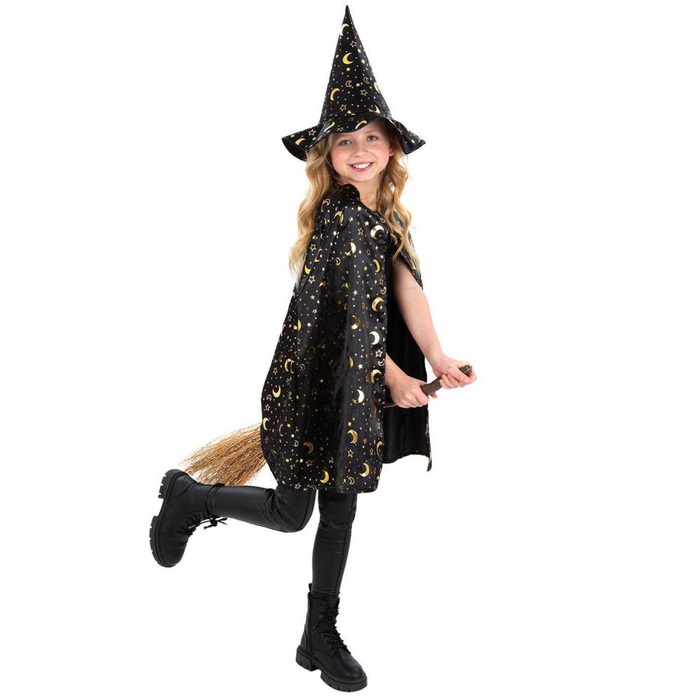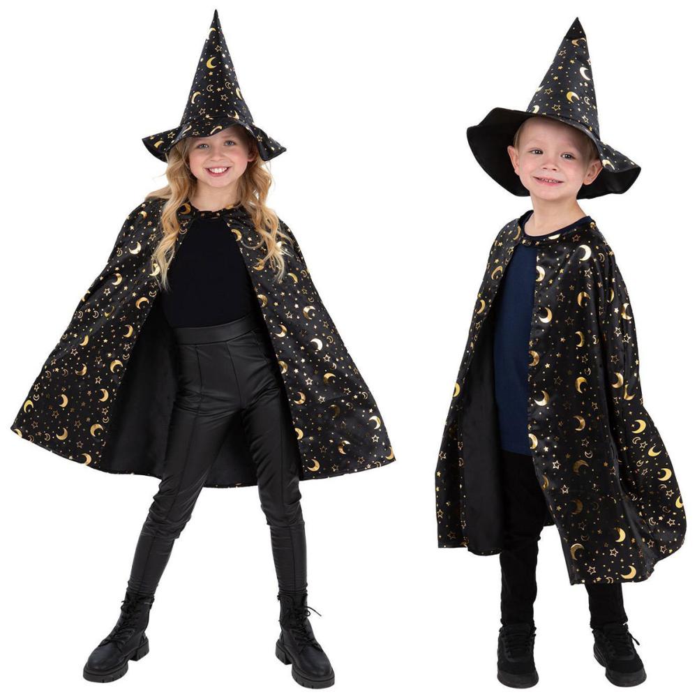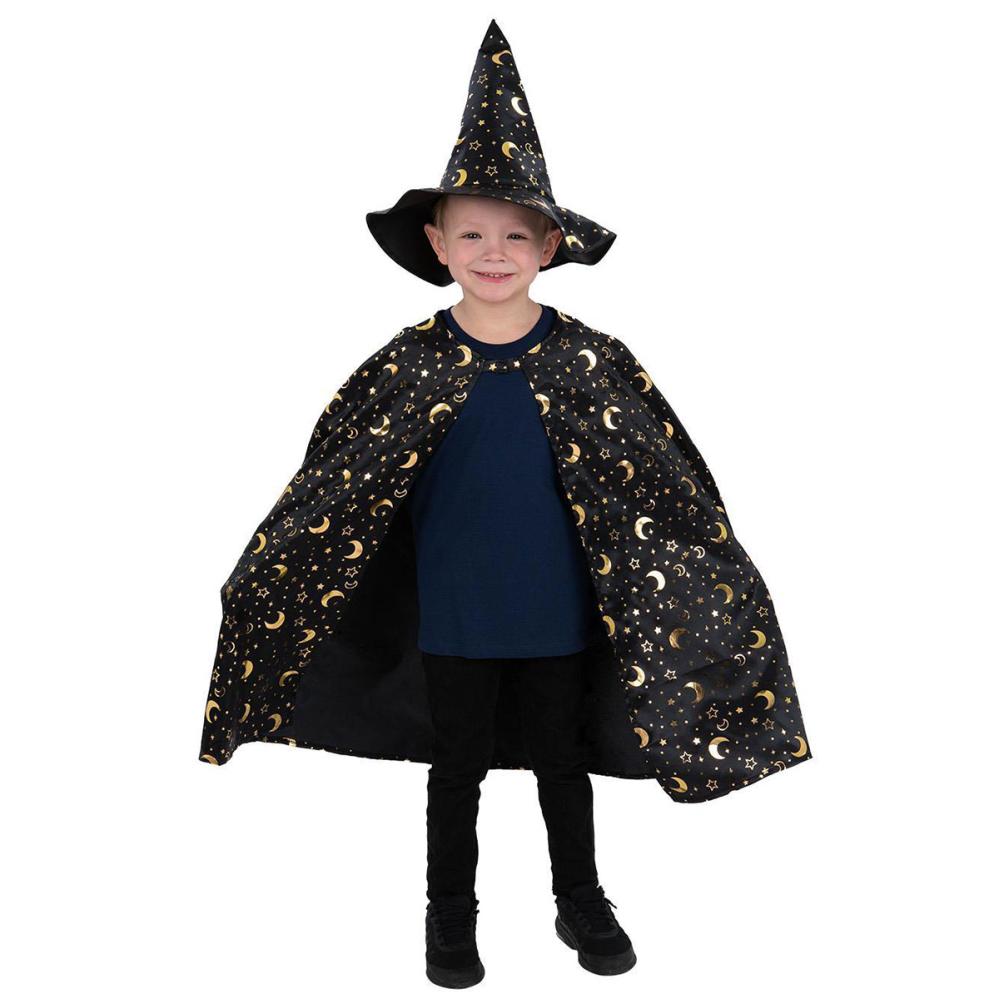 Forvandle leken til magi med dette utkledningssettet for barn i trollmannstil. Det er perfekt som tilbehør til en trollmannsmaskerade på Halloween, med kappe og hatt fylt med stjerner og måner for en fortryllende look som alle barn kan bære.