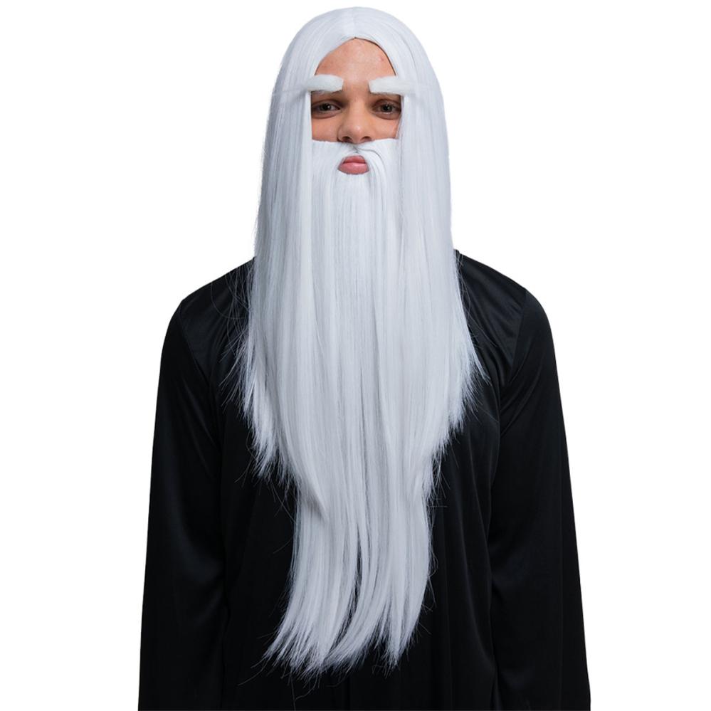 Forvandle deg til en ekte trollmann med dette kostymesettet som inneholder en trollmannsparykk, langt skjegg og selvklebende øyenbryn. Perfekt som Halloween parykk eller til hvilken som helst magisk fest.