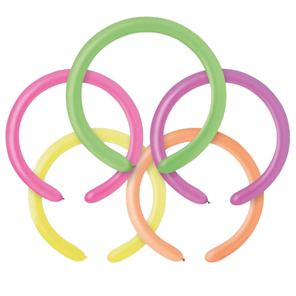 Å lage dyr av modellballonger får plutselig nytt liv når disse ballongene lyser opp festen i en herlig blanding av lilla, grønn, rosa, oransje og gul i intens neon. Disse UV-ballongene får rommet til å gløde og neonballonger hever stemningen.