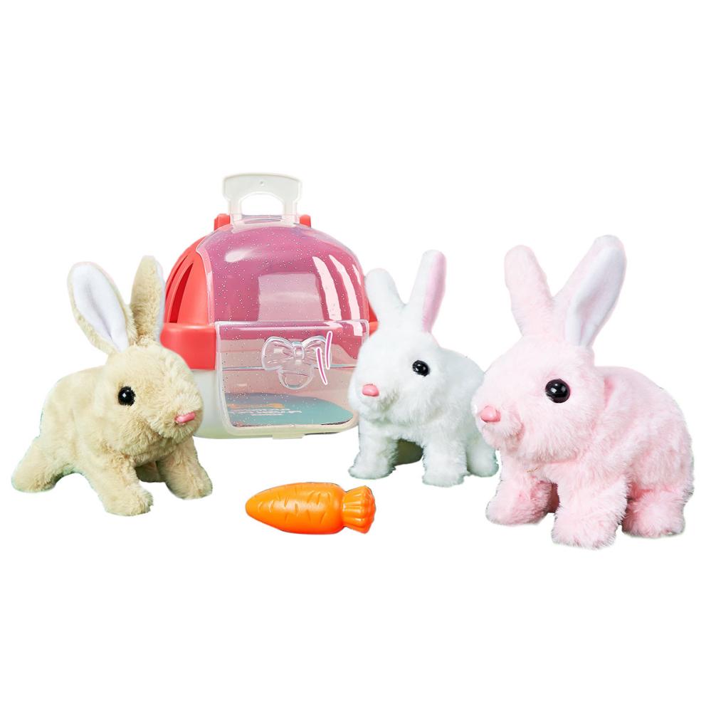 Vandrende Kanin med Gulrot & Transportkasse omfatter en leke i form av en kanin som kan gå, lage lyd og bevege munnen, en oransje gulrot samt en transportkasse i korall og hvit med bærehåndtak og glitrende transparent oppfellbart lokk. Kaninen finnes i fargene lysebrun, hvit eller rosa (fargen velges tilfeldig).