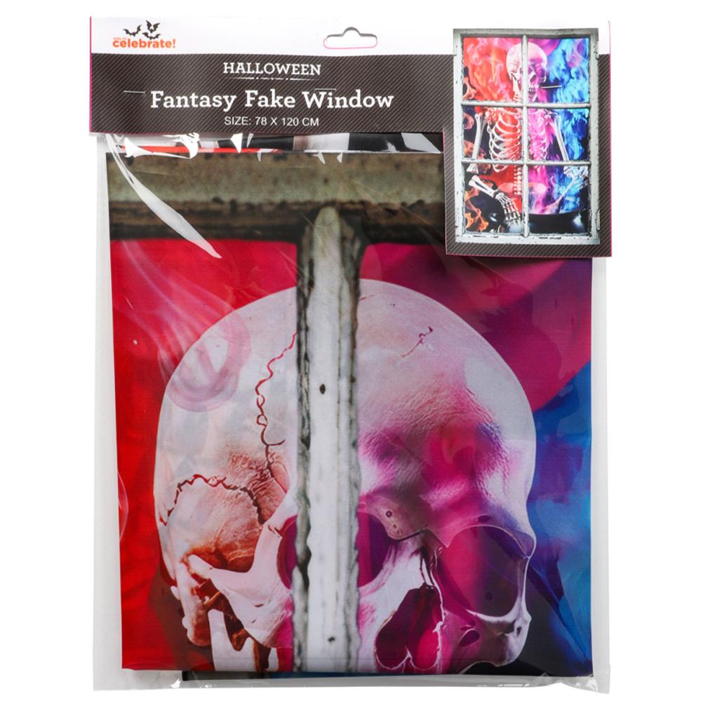 Gi vinduet liv med en Halloween-vindusdekorasjon med skjelettmotiv som garantert vekker oppmerksomhet. Denne Halloween-stoffdekorasjonen gir illusjonen av at et skjelett stirrer ut over nabolaget, perfekt som dekorasjon til en Halloweenfest.