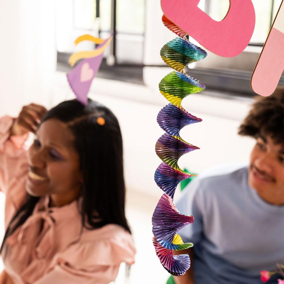 Skap en festlig stemning med disse virvatellerne i fargerike nyanser. De er perfekte som hengende dekorasjon i selskapet eller som lekne festdekorasjoner som alle barn elsker. De er enkle å henge opp i taket eller på veggen.