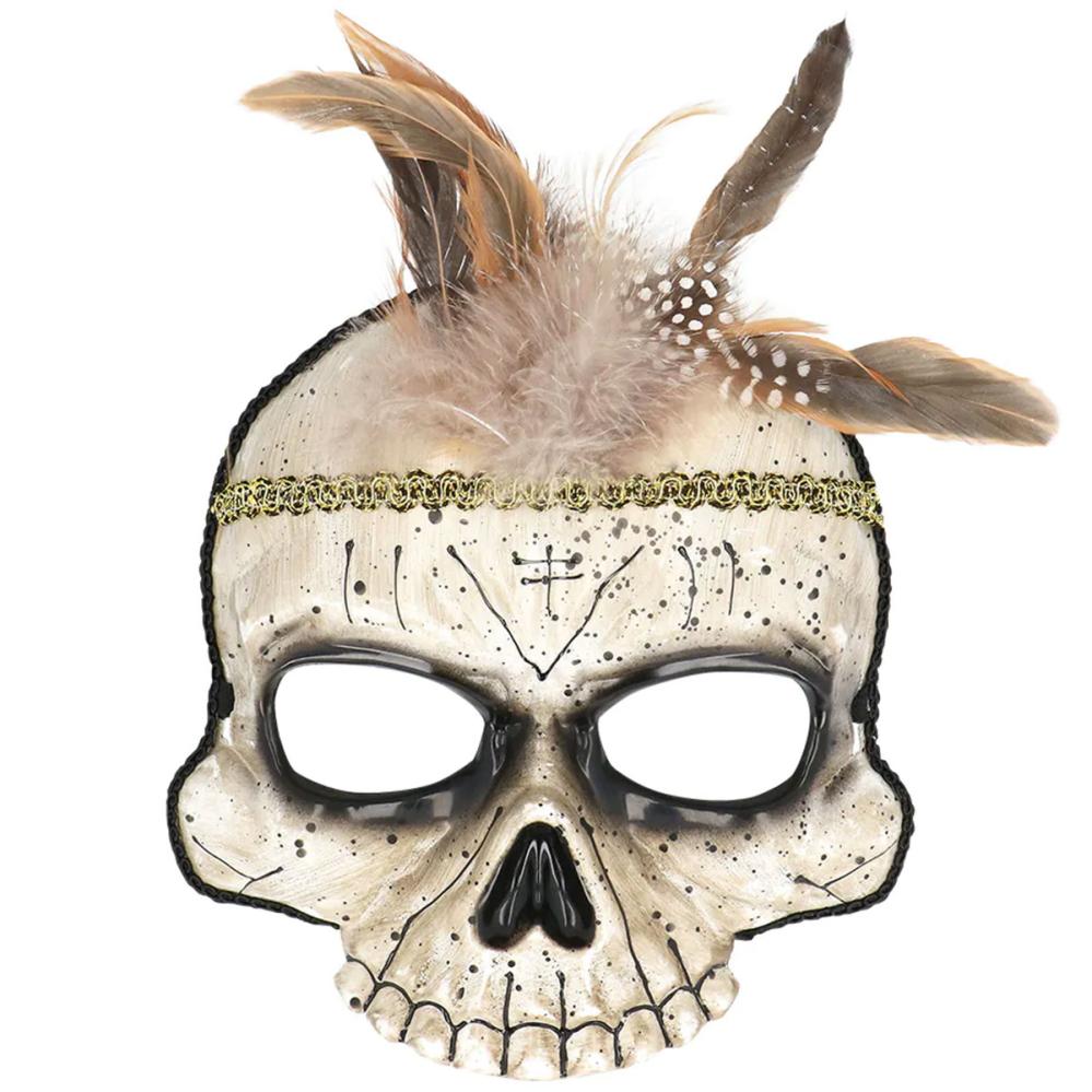 Info om Voodoo Halvmaske Hodeskalle med Fjær: