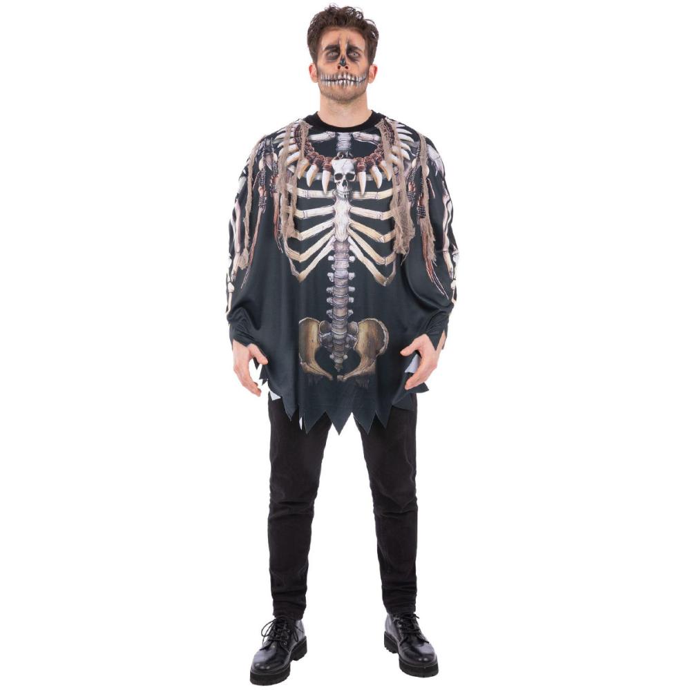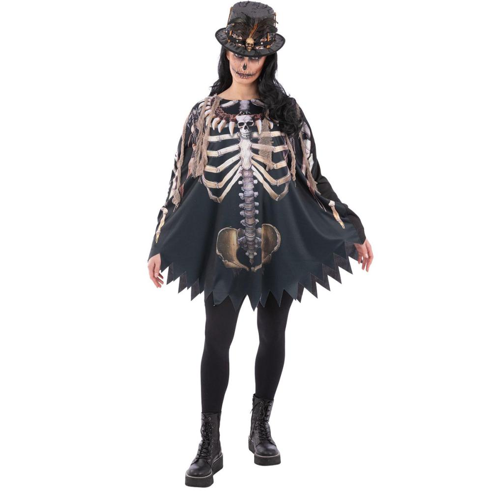 Gi voodoo-kostymen din en ekstra dose mystikk med denne Halloween-ponchoen. En perfekt svart poncho med skjelettmotiv og voodoo-smykker som setter tonen for en uhyggelig minneverdig kveld.